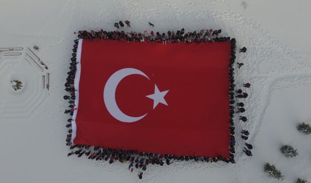 1300 metrelik zirvede dev Türk Bayrağı