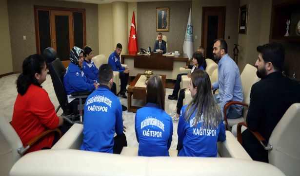 Marmara Belediyeler Birliği ve Kocaeli Büyükşehir Belediye Başkanı Doç. Dr. Tahir Büyükakın, Kağıtpor’un uluslararası alanda başarı sağlamış sporcularını makamında ağırladı. Bedensel Engelli Bilek Güreşi 2018 Dünya üçüncüsü ve 2019 Avrupa ikincisi Meryem Yıldırım, Görme Engelli Judo Dünya ve Avrupa Şampiyonu Zeynep Çelik Aydın, Atıcılık Avrupa Şampiyonu Murat İlbilgi, Görme Engelli Judo Avrupa ikincisi Recep Çiftçi, 2019 Dünya ve Avrupa Gençlik Olimpiyatları Şampiyonu Merve Azak ile Avrupa Gençlik Olimpiyatları ikincisi Müberra Güneş ve Karate Avrupa ikincisi Gülsen Demirtürk’le olan buluşmasında başarılı sporcuları tek tek tebrik eden Başkan Büyükakın, “Bayrağımızı dalgalandırdığınızda ve başarılı olduğunuzda bize büyük bir gurur yaşatıyorsunuz. Bunun için sizlere gönüldeb teşekkür ediyorum” dedi.